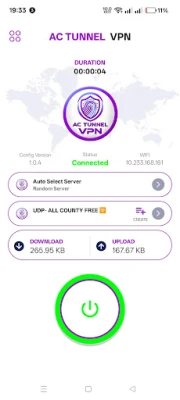 Interfața Ac Tunnel VPN este un exemplu de simplitate și claritate, concepută pentru o utilizare intuitivă de către oricine. Cu doar o singură atingere, poți activa rapid tunelul securizat, alegând configurația dorită pentru o experiență fără efort. Securitatea datelor tale este prioritatea numărul unu, iar aplicația utilizează metode de tunelare sigure pentru a-ți menține conexiunea protejată împotriva amenințărilor externe.