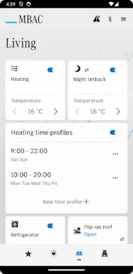 Transformă-ți autocaravana Mercedes-Benz într-un hub inteligent, direct de pe smartphone-ul tău. Cu **Mercedes-Benz Advanced Control**, ai la îndemână controlul centralizat și intuitiv al funcțiilor esențiale, conectând comod prin Bluetooth. Această aplicație revoluționară este concepută pentru a-ți oferi o experiență de călătorie fără precedent, transformând fiecare deplasare într-o aventură relaxantă și personalizată, gata să-ți satisfacă nevoile din mers.