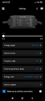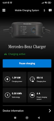 Mercedes-Benz Charger vă permite să controlați și monitorizați încărcarea vehiculului direct de pe smartphone. Reglați setările, cum ar fi amperajul și prețul per kWh, și vizualizați starea curentă, capacitatea încărcată și costurile. Accesați istoricul pentru o imagine completă.