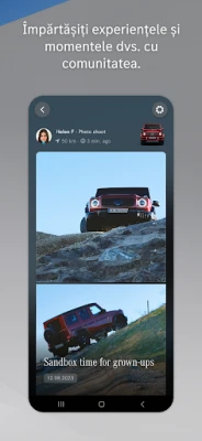 Captează momentele tale de neuitat cu funcția de înregistrare video, direct de pe smartphone. Creează materiale vizuale de înaltă calitate, sincronizate perfect cu documentația fiecărei sesiuni de condus, și transformă-le în „Povești" captivante. Ai chiar posibilitatea de a înregistra din multiple unghiuri, deschizând noi perspective asupra experiențelor tale. Partajează aceste creații cu o comunitate vibrantă de utilizatori cu interese similare. Pe „Fluxul principal", pagina ta personală, vei descoperi constant noi activități și „Povești" publicate de alți membri, oferindu-ți inspirație și noi conexiuni în universul automobilistic.
