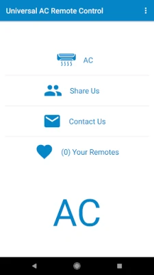 Remote AC Universal transformă telefonul într-o telecomandă universală pentru aer condiționat. Compatibil cu numeroase mărci populare, inclusiv Samsung, LG, Panasonic, Daikin, Midea și Haier, acest instrument intuitiv simplifică gestionarea climatului interior. Oferă acces rapid la funcțiile esențiale ale aparatului tău AC.
