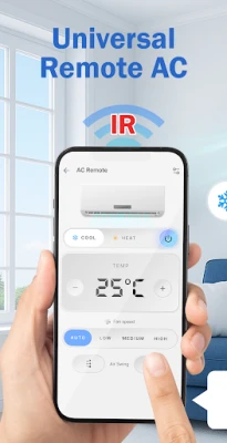 Spuneți adio preocupărilor legate de telecomenzile pierdute, stricate sau cu baterii descărcate. **Universal AC Remote Controller** vă oferă o alternativă rapidă, sigură și extrem de convenabilă, integrând controlul climatizării în ecosistemul digital al telefonului dumneavoastră. Bucurați-vă de o experiență de gestionare a confortului termic superioară, oricând și oriunde. Pentru o funcționalitate optimă, este esențial ca dispozitivul dumneavoastră mobil să fie echipat cu un emițător infraroșu (IR blaster). Vă rugăm să verificați specificațiile telefonului înainte de utilizare pentru a asigura o compatibilitate deplină.