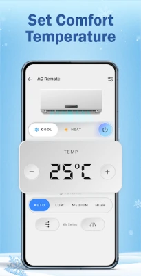 "Universal AC Remote Controller" transformă telefonul într-o telecomandă universală AC. Controlează aparatul de aer condiționat oricând, oriunde, cu funcții inteligente. Beneficiază de împerechere rapidă și compatibilitate extinsă cu diverse mărci. O soluție inteligentă pentru confortul tău.